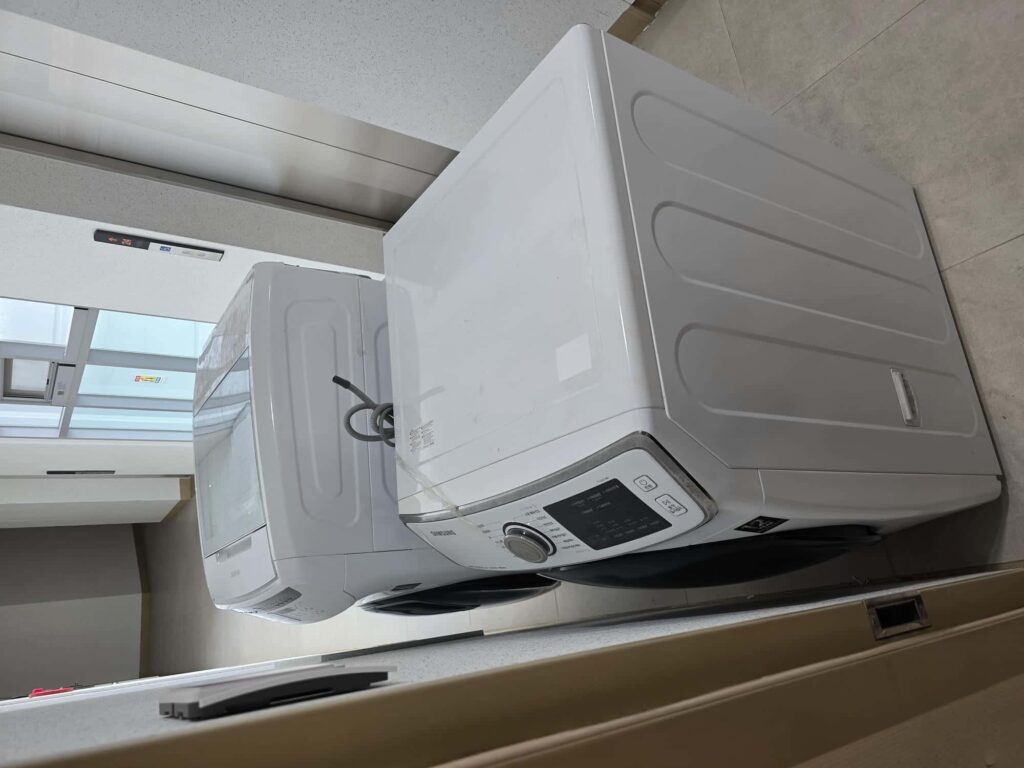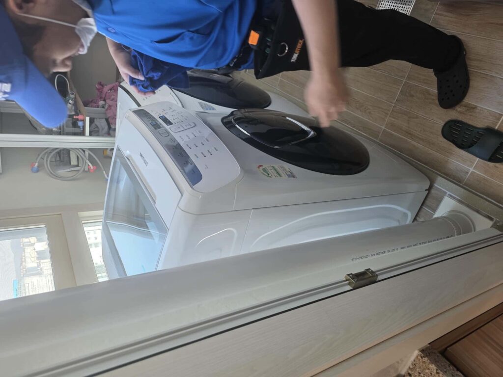세탁기와 건조기 두 대를 완전히 분해해서 청소 후 다시 조립해 제자리에 정확하게 세팅해주셨다.